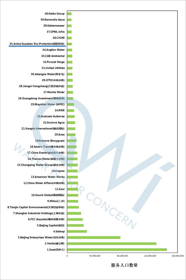 在这份排名中,国祯环保等中国水务公司榜上有名,榜单中还包括北控水务、首创股份、上海实业、天津创业环保、桑德国际、中国水务、重庆水务、光大水务、康达国际、粤海投资、江西洪城水业、中信水务等,这些榜上有名的公司拥有众多水务资产,服务人口数量广泛。