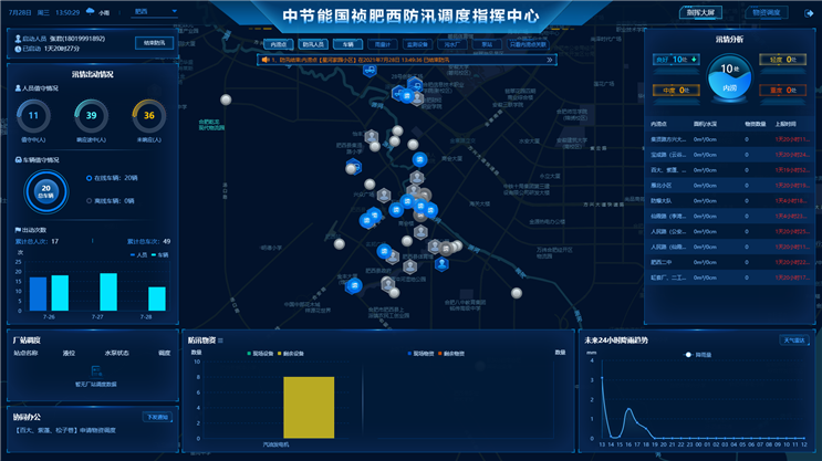 为深入推进中节能国祯智慧管网综合管理系统(以下简称“智慧管网”)数据采集自动化、决策支持智能化、管控安全一体化体系建设,今年5月份智慧管网系统正式上线防汛排涝子系统和物资管理功能(2.0),并在本次防汛实战中实现应用。在实际应用中,上述子系统对易涝点积水量估算值的精确率达95%,防汛预警信息传感精准度100%,物资调度台账和库存统计实现次清日结,能有效替代部分线下人工指令传达路径,极大地提升了管网防汛调度效能 。